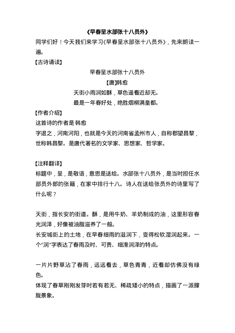 早春呈水部張十八員外
