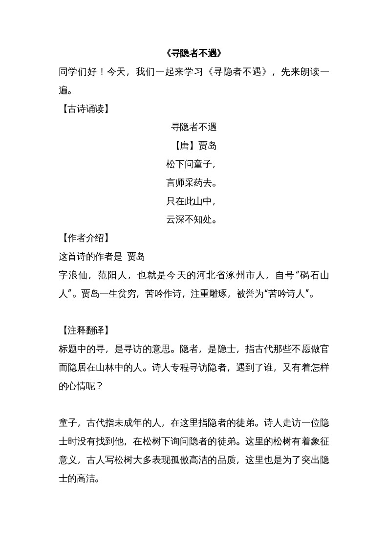 尋隱者不遇