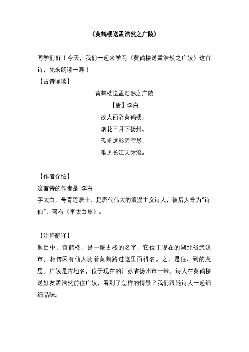 黃鶴樓送孟浩然之廣陵