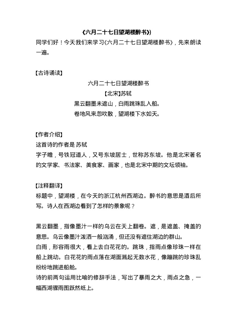 六月二十七日望湖樓醉書