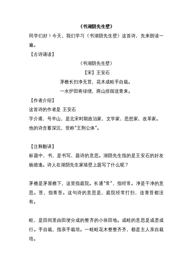 書(shū)湖陰先生壁