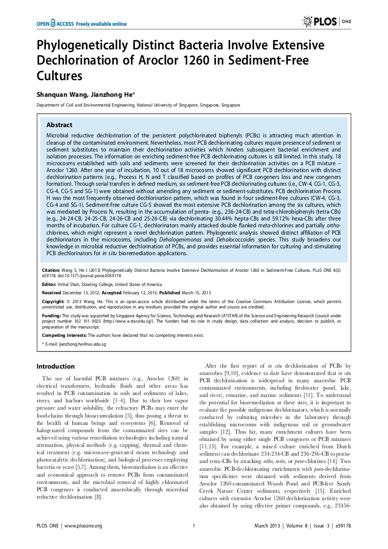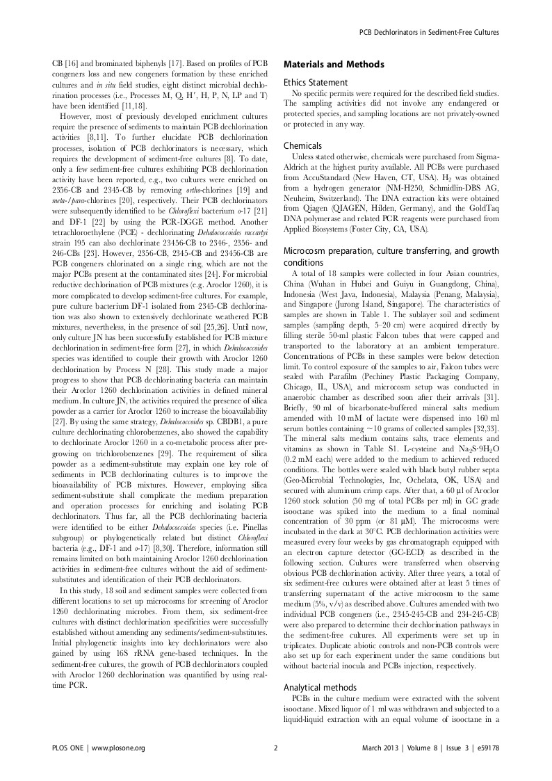 Phylogenetically Distinct Bacteria Involve Extensive Dechlorination of Aroclor 1260 in Sediment-Free Cultures