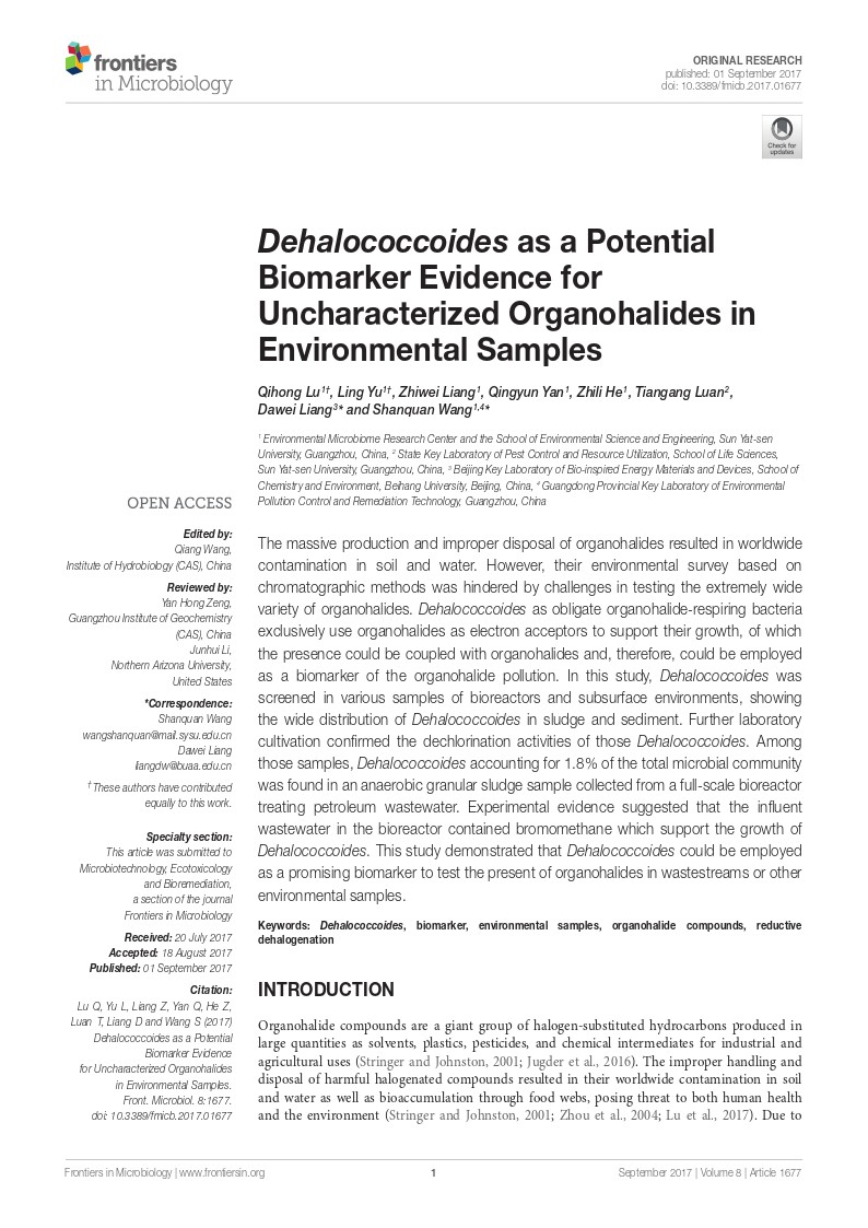 Dehalococcoides as a Potential Biomaker Evidence For Uncharacterized Organohalides in Environmental Samples