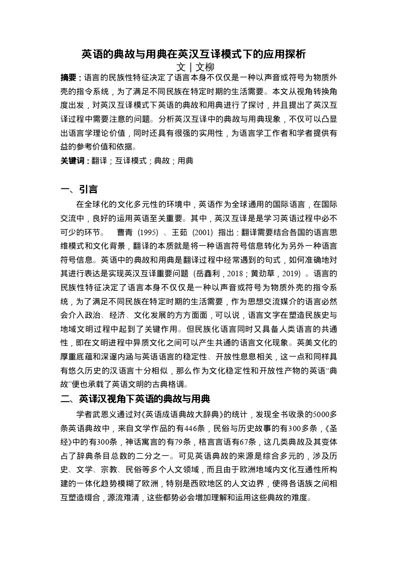 英語的典故與用典在英漢互譯模式下的應(yīng)用探析