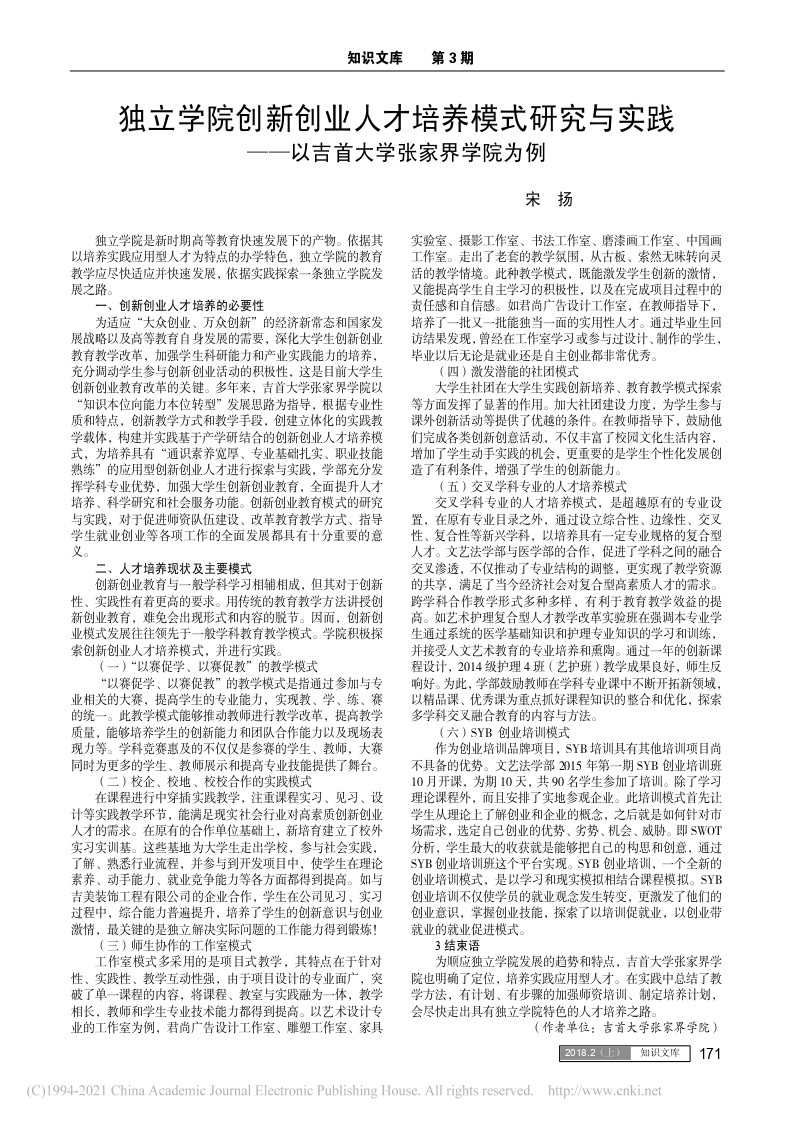 獨立學院創(chuàng)新創(chuàng)業(yè)人才培養(yǎng)模...—以吉首大學張家界學院為例