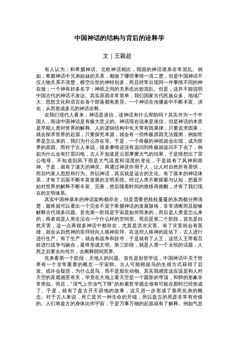 中國神話的結(jié)構(gòu)與背后的詮釋學(xué)